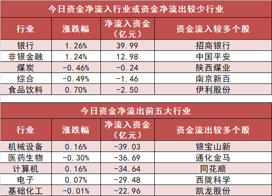 申万一级行业中,2个行业实现资金净流入,其中银行板块净流入39.99亿元居首。