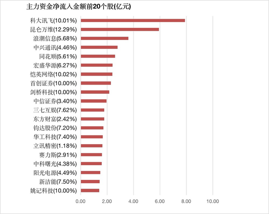 4、主力资金净流入居前20股