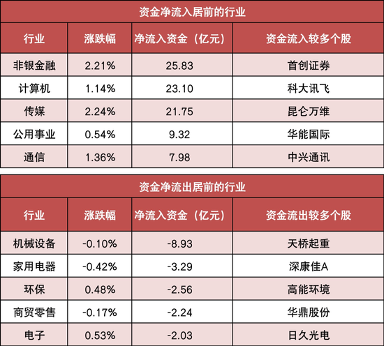 3、非银金融等行业实现净流入