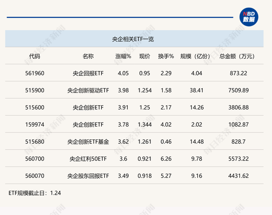 2024年1月国资委相关负责人首次表示将研究把市值管理成效纳入对中央企业负责人的考核中。今日中字头继续大涨,央企回报ETF(561960)、央企创新驱动ETF(515900)和央企创新ETF(515600)等各类与央企相关的ETF今日上午涨幅都在3%以上,得到资金重点关注。