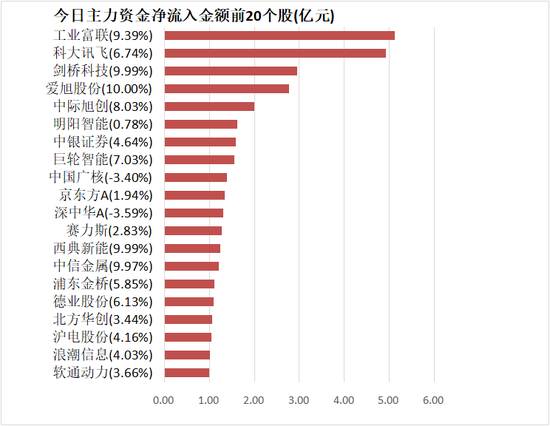 4.工业富联主力资金净流入5.12亿元居首