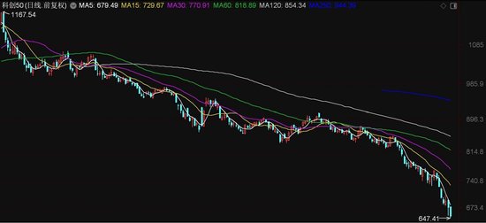 科创50指数跌超3%,再创调整新低,早盘一度跌至647.41点。
