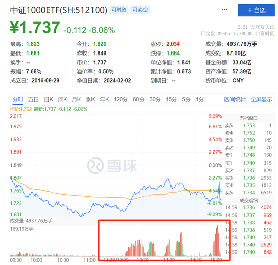 可以看出,中证500ETF以及中证1000ETF明显放量,截至收盘,中证500、中证1000规模较大的2只ETF合计成交额近250亿,具体来看,中证500ETF成交额为160.81亿元,是前一个交易日的近9倍;中证1000ETF成交额达到87亿,是前一个交易日的7.7倍。
