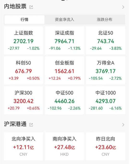 高股息及权重股再度走强,中国石油、中国海油、贵州茅台均涨超2%,长江电力、农业银行等多股再创历史新高。创业板权重股午后集体大涨,迈瑞医疗、爱尔眼科、宁德时代、智飞生物涨超4%。