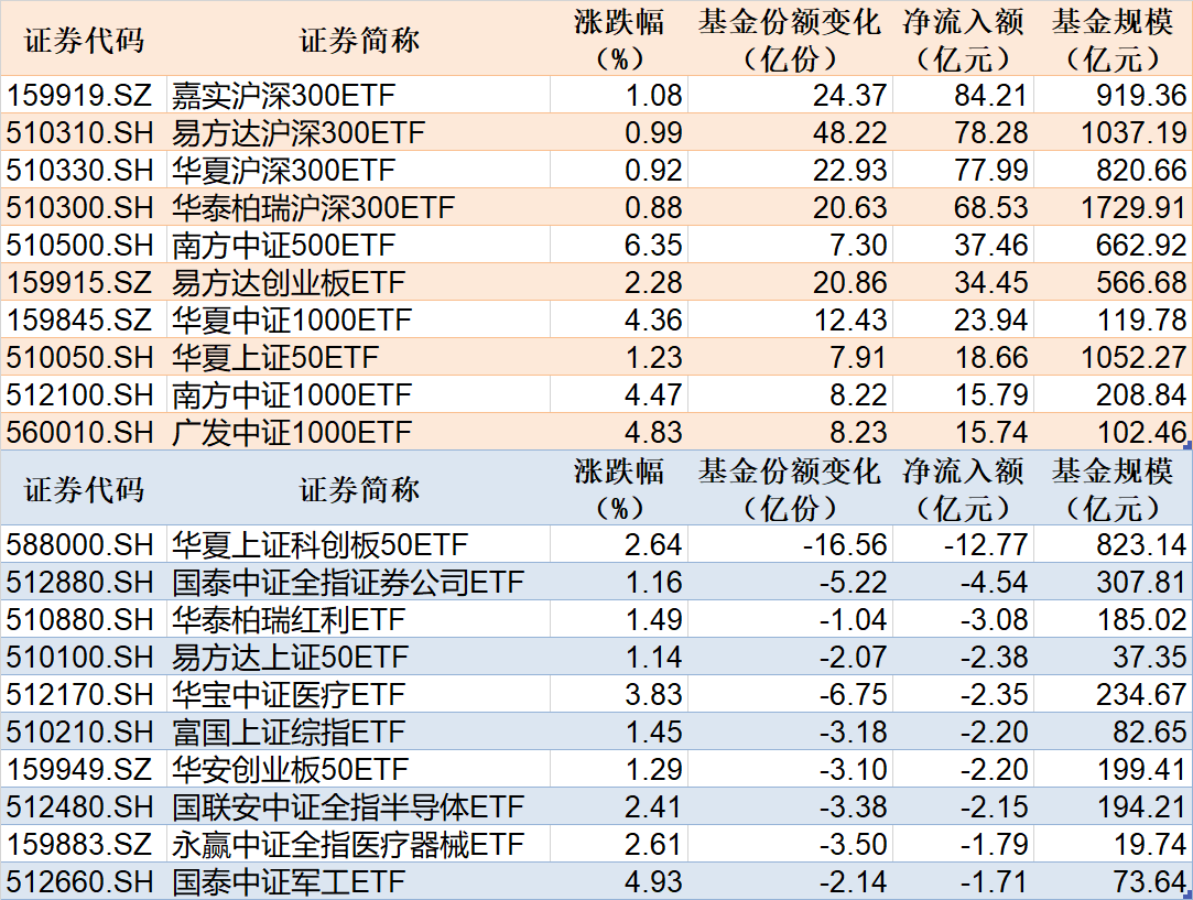 值得注意的是,4只规模较大的沪深300ETF合计净流入额达309亿元。