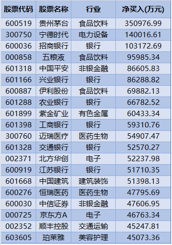 本周北上资金净买入较多的个股