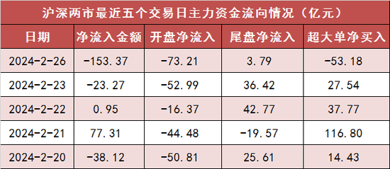 今日沪深两市主力资金开盘净流出73.21亿元,尾盘净流入3.79亿元,两市全天主力资金净流出153.37亿元。