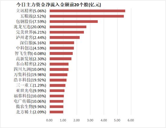4.立讯精密主力资金净流入5.55亿元居首