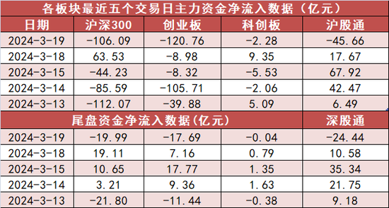 沪深300今日主力资金净流出106.09亿元,创业板净流出120.76亿元,科创板净流出2.28亿元。沪股通净流出45.66亿元,深股通净流出24.44亿元。