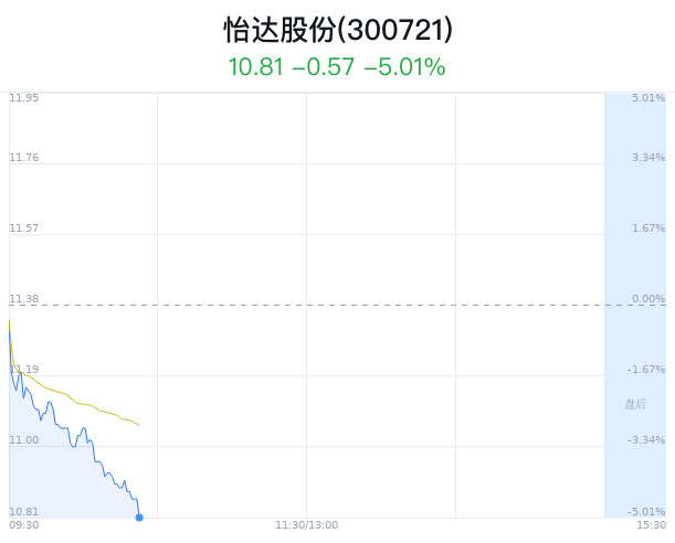 04月10日,怡达股份(300721)股价大幅下跌,截至10点22分,怡达股份下跌5.01%,报10.81元/股,成交1243万元,换手率0.82%,振幅4.75%。