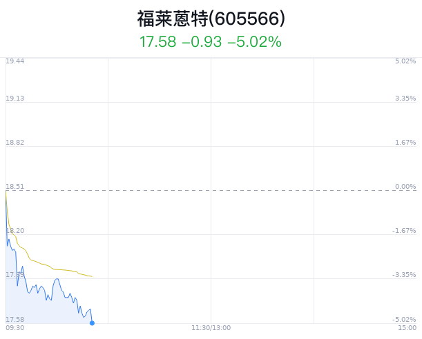 04月10日,福莱蒽特(605566)股价大幅下跌,截至10点20分,福莱蒽特下跌5.02%,报17.58元/股,成交1835万元,换手率1.65%,振幅5.24%。