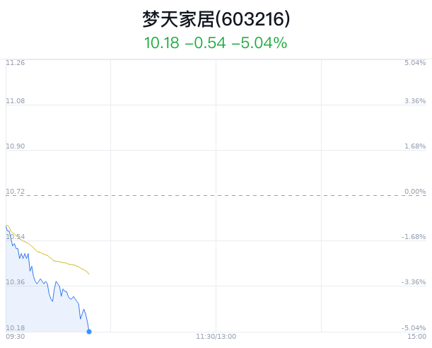 04月10日,梦天家居(603216)股价大幅下跌,截至10点17分,梦天家居下跌5.04%,报10.18元/股,成交2630万元,换手率4.46%。