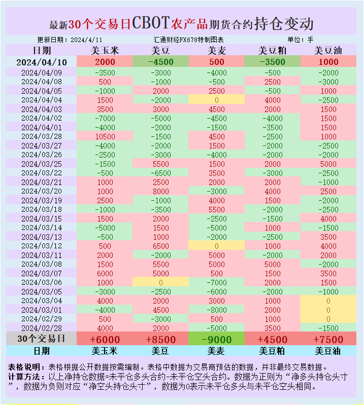 CBOT持仓变动情况