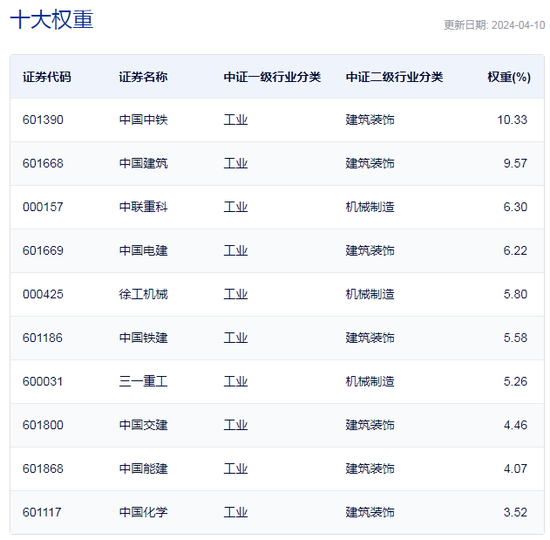 中证基建指数重仓股