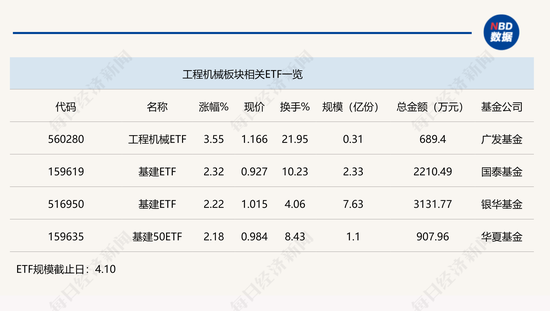 点评:工程机械ETF(560280)半日大涨3.55%,不过,其规模较小,只有3075万份,该ETF上午成交金额为689万元,追踪的是中证工程机械主题指数。