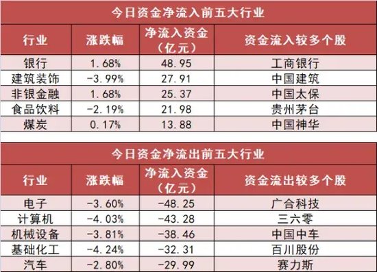 申万一级行业中,8个行业实现资金净流入,其中银行板块净流入48.95亿元居首。