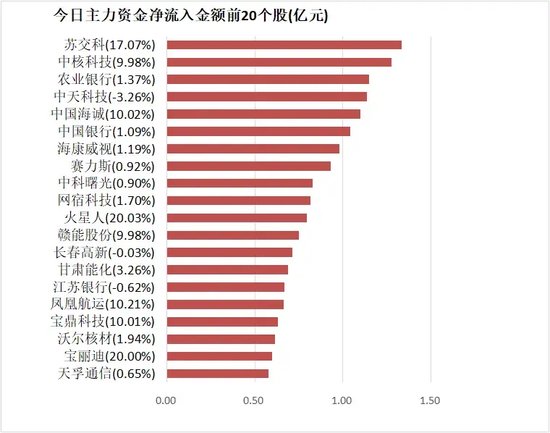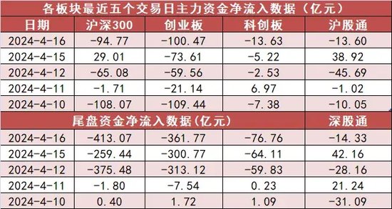 沪深300今日主力资金净流出94.77亿元,创业板净流出100.47亿元,科创板净流出13.63亿元。沪股通净流出13.6亿元,深股通净流出14.33亿元。