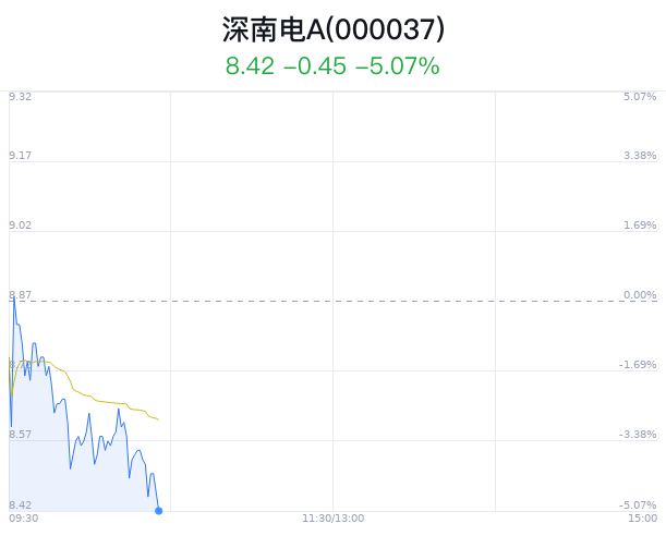 04月18日,深南电A(000037)股价大幅下跌,截至10点25分,深南电A下跌5.07%,报8.42元/股,成交1.04亿元,换手率3.57%。