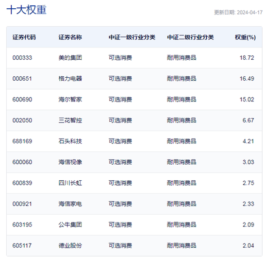 中证全指家用电器指数重仓股