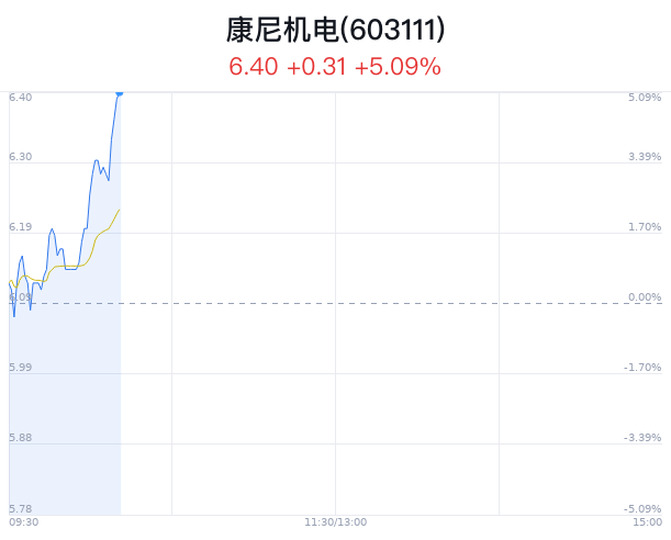 05月13日,康尼机电(维权)(603111)股价大幅上涨,截至10点10分,康尼机电上涨5.09%,报6.40元/股,成交7423万元,换手率1.42%。