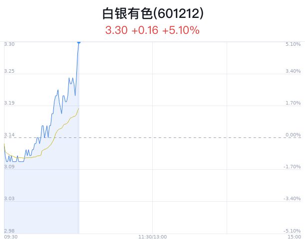 05月15日,白银有色(601212)股价大幅上涨,截至10点30分,白银有色上涨5.10%,报3.30元/股,成交2.54亿元,换手率1.07%。