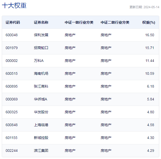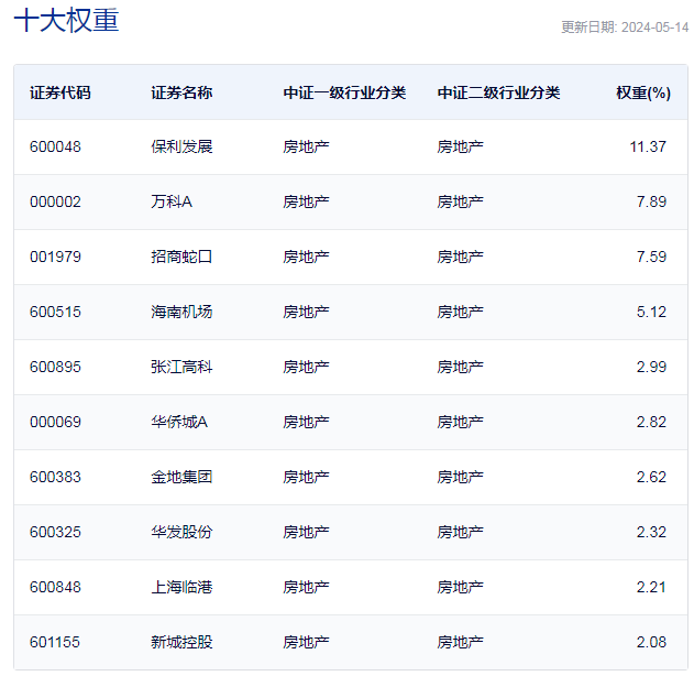 中证全指房地产指数重仓股