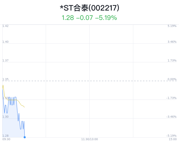 05月21日,*ST合泰(002217)股价大幅下跌,截至10点00分,*ST合泰触及跌停,报1.28元/股,成交7831万元,换手率1.91%,振幅5.93%。