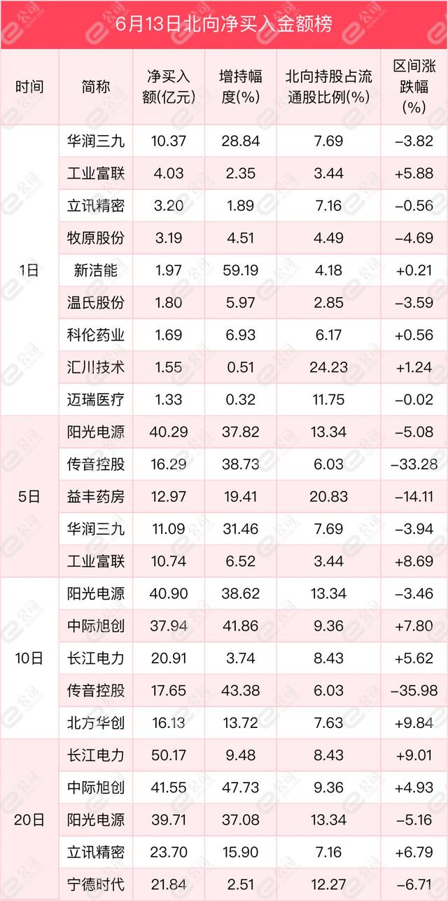 从买卖金额来看,华润三九、工业富联、立讯精密获北向资金净买入金额居前,分别为10.37亿元、4.03亿元、3.2亿元,增持幅度分别为28.84%、2.35%、1.89%。