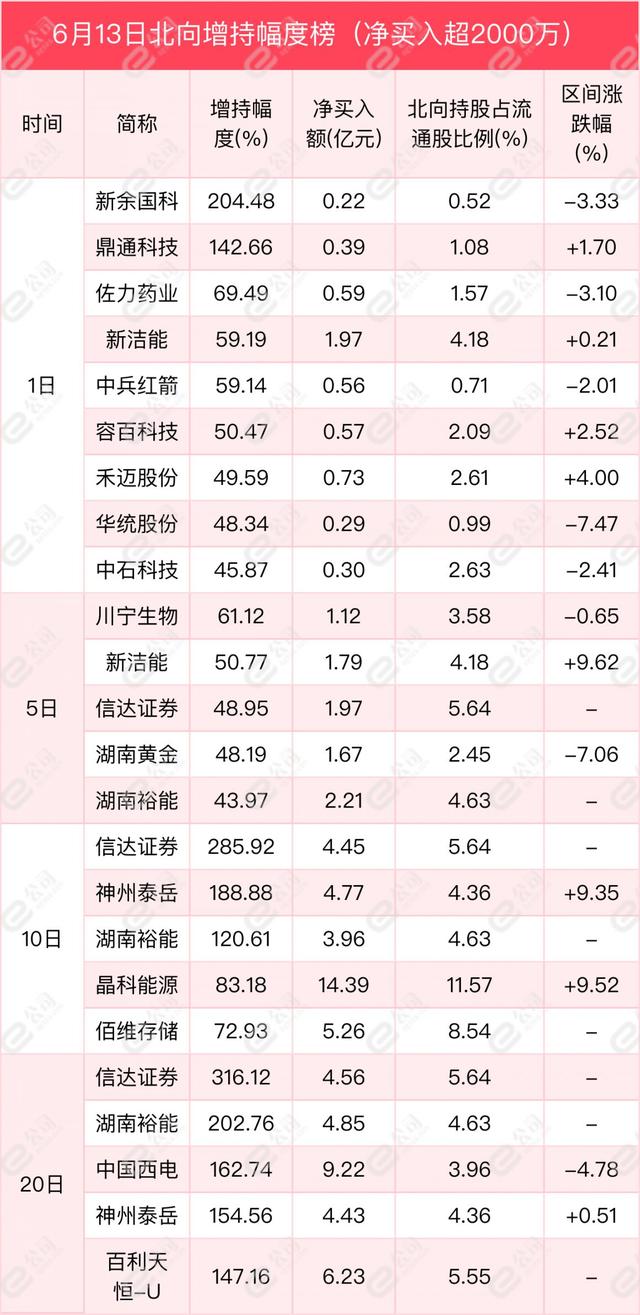 从增减持幅度来看,单日净买卖超2000万元以上的个股中,新余国科、鼎通科技、佐力药业获北向资金增持幅度居前,分别为204.48%、142.66%、69.49%。