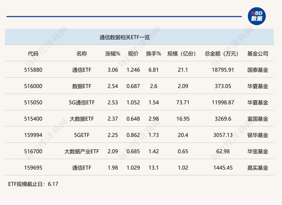 点评:通信ETF(515880)今日上午上涨3.06%,其规模为21.1亿份,半日成交金额为1.88亿元,其追踪的是中证全指通信设备指数。