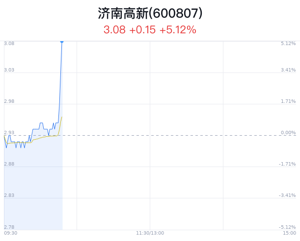 06月19日,济南高新(600807)股价大幅上涨,截至10点17分,济南高新上涨5.12%,报3.08元/股,成交1133万元,换手率0.49%,振幅5.80%。