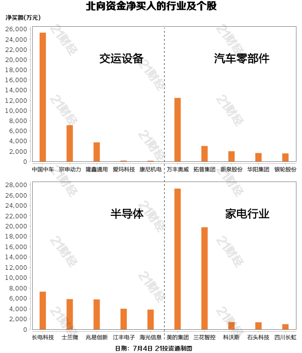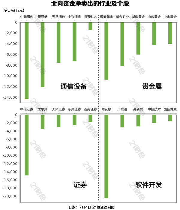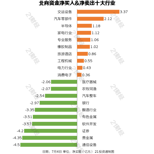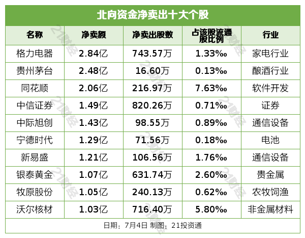 据21投资通智能监测,7月4日,北向资金净卖出39.66亿元,其中沪股通净卖出7.87亿元,深股通净卖出31.79亿元。