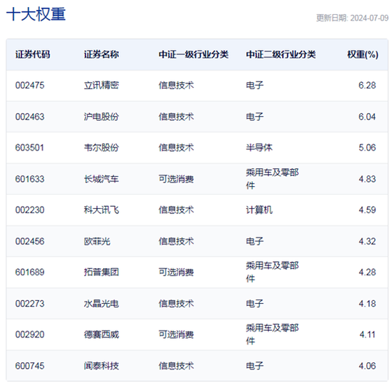 中证车联网主题指数主要权重股