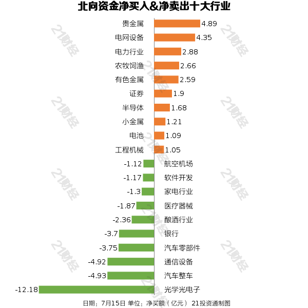 据21投资通智能监测,7月15日,北向资金净卖出29.4亿元,其中沪股通净买入9.24亿元,深股通净卖出38.64亿元。