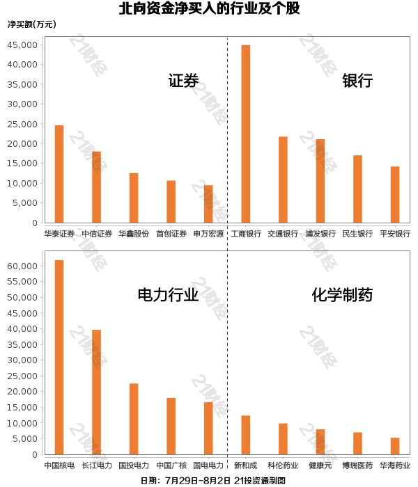 从净买入金额来看,北向资金增持了71个行业,其中证券居首,净买入金额达19.80亿元,其次是银行行业,净买入17.02亿元。