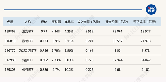 ETF市场方面,游戏相关ETF半日大涨约4%,传媒ETF涨2.7%。
