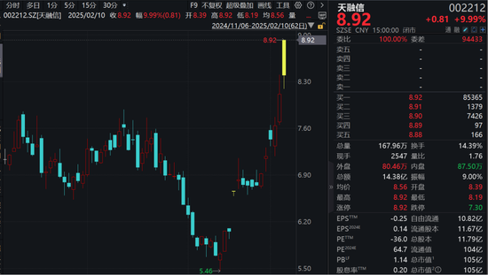 另外,DeepSeek红利还在向下游应用领域外溢,智慧政务、人脑工程、电信服务、教育培训等受益人工智能发展的板块也纷纷大涨,湘邮科技、常山北明、网达软件、天融信等批量涨停。