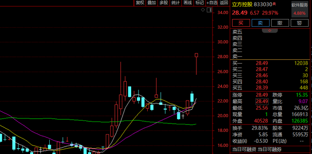 板块内个股掀涨停潮,立方控股高开后秒速30%涨停,中亦科技、致远互联、鼎捷数智、博实结等多股20cm封板,三维通信、宁水集团、云鼎科技等近50股也强势涨停或涨超10%。