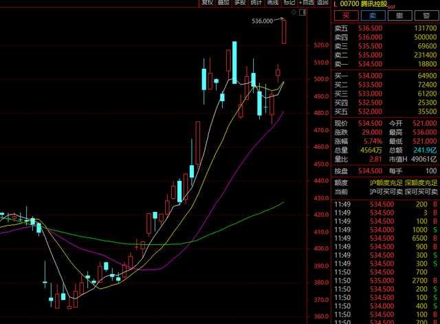 港股游戏股也跟随走强,腾讯控股再度跳空高开高走,大涨逾5%,创三年半多来新高,半日市值猛增逾2570亿港元,祖龙娱乐、哔哩哔哩、网龙、心动公司等涨幅居前。