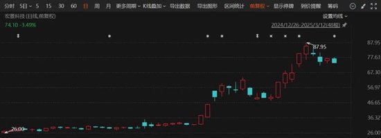 近期,算力行业大单频出,披露相关订单的公司股价也表现亮眼。3月6日,因属于有价格涨跌幅限制的日换手率达到30%的前五只证券之一,宏景科技登上龙虎榜。宏景科技当日报收85.54元,涨跌幅为6.46%,换手率46.07%,振幅14.62%,成交额19.35亿元。3月12日,宏景科技报收74.1元,总市值为81.25亿。