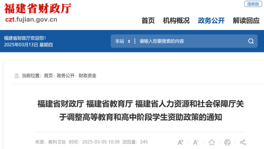 为全面贯彻党的二十大和二十届二中、三中全会精神,落实立德树人根本任务,完善覆盖全学段学生资助体系,根据《财政部 教育部 人力资源社会保障部关于调整高等教育阶段和高中阶段国家奖助学金政策的通知》(财教〔2024〕181号)文件要求,经省政府同意,现将我省调整高等教育阶段和高中阶段学生资助政策有关事项通知如下: