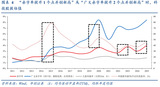 (一)经验规律1:近十年,“赤字率提升1个点并创新高”或“广义赤字率提升2个点并创新高”时,科技股拔估值