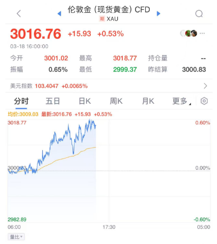 黄金集体大涨,明牌珠宝、莱绅通灵涨停。消息面上,北京时间3月18日,现货黄金价格一度触及3018.77美元/盎司,创历史新高,今年以来累计上涨超14%。