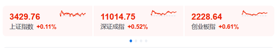 中国市场方面,A股三大指数小幅上涨,截至收盘,沪指涨0.11%,深成指涨0.52%,创业板指涨0.61%。