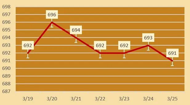 今日黄金回收价格每克691元,铂金回收价格每克200元,钯金回收价格每克191元,18K金回收价格每克495元,白银回收价格每克5.6元。(黄金行情是波动的,以结算价格为准。)