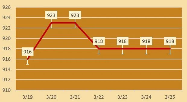 | 潮宏基 | 黄金价格 | 918元/克 | 持平 |