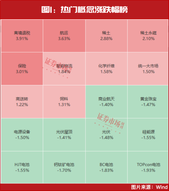 5月14日,A股市场整体延续了“对等关税”事件以来震荡上行趋势,沪指重登3400点,热门赛道多点开花,其中出口链再次强势领涨,离境退税、航运两个出口相关概念涨幅居前,截至午间收盘,分别报涨3.91%和3.63%(见图1)。个股方面,国航远洋大涨24.84%,华光源海大涨13.69%,宁波海运、南京港、连云港、锦江航运均触及“10CM”涨停,国芳集团、小商品城、厦门港务等纷纷跟涨。