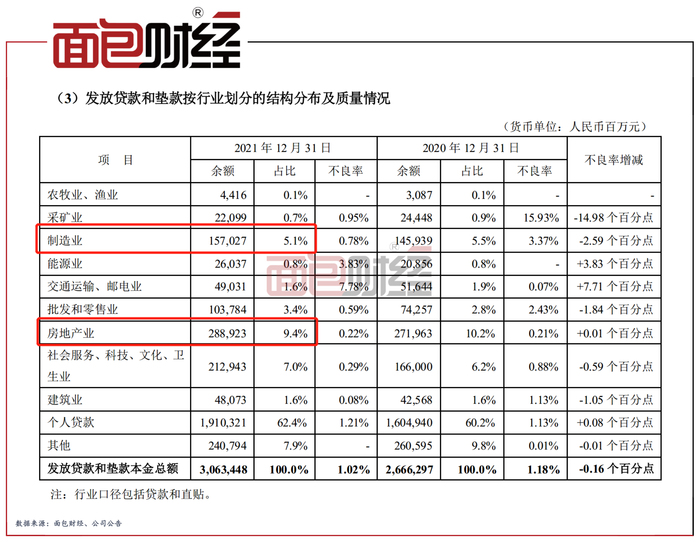 通过将年报中的文字描述与相关数据进行对比印证不难看出,平安银行在文字上表态支持实体经济、支持制造业,但是从行为上看,平安银行的信贷投放更偏向房地产业。