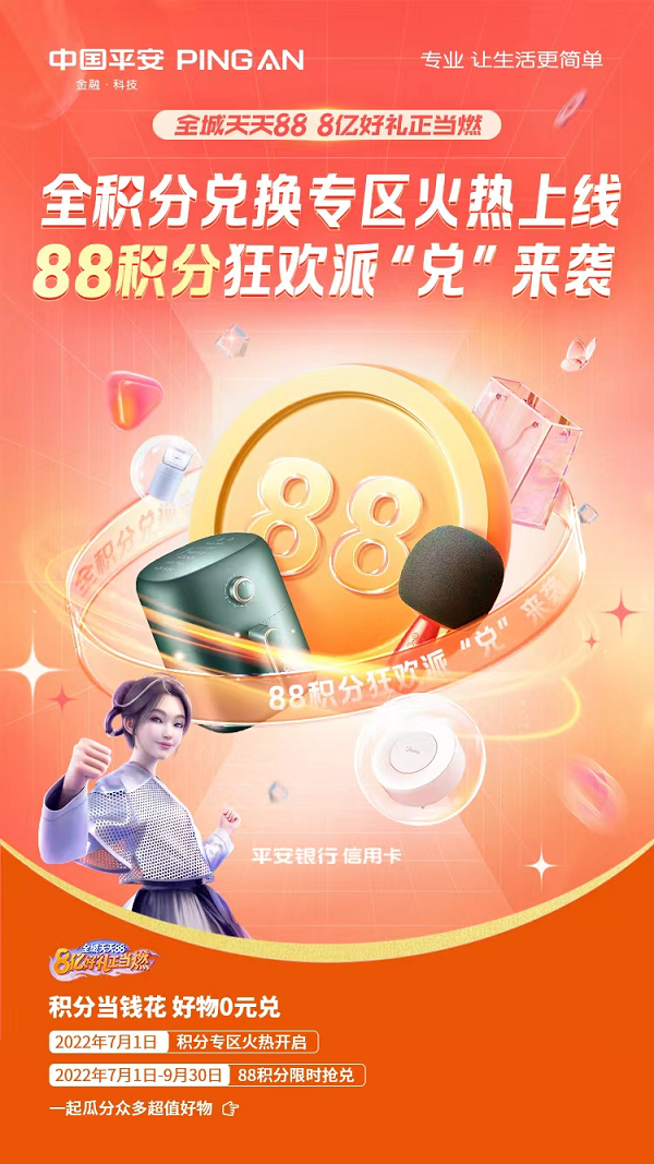 7月1日,平安银行信用卡全新推出积分专区,精选百余款品质生活好物为用户带来超值回馈。7月1日-9月30日,持卡人还可参与“88积分超值兑”活动,仅需88积分即可兑换精选好礼。平安银行信用卡致力以超值福利与丰富的积分玩法,带给持卡人更优质、实惠的消费体验。