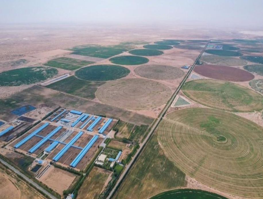据介绍,圣牧牧场所在地曾是黄河故道,表面虽然黄沙覆盖,但黄沙之下依然是适宜植物生长的土层,圣牧选择以此为突破口改造沙漠、建造牧场,是因地利而行。
